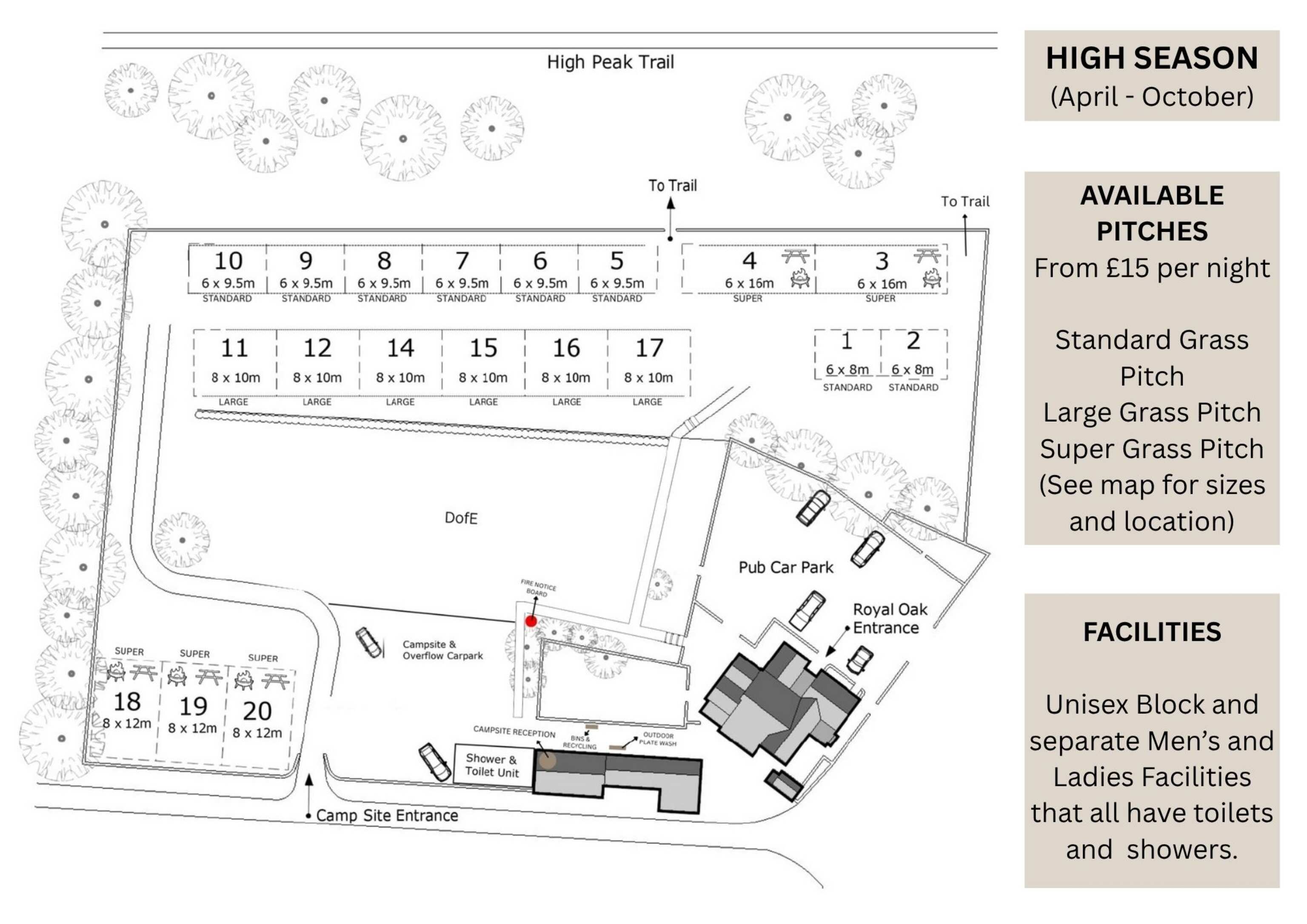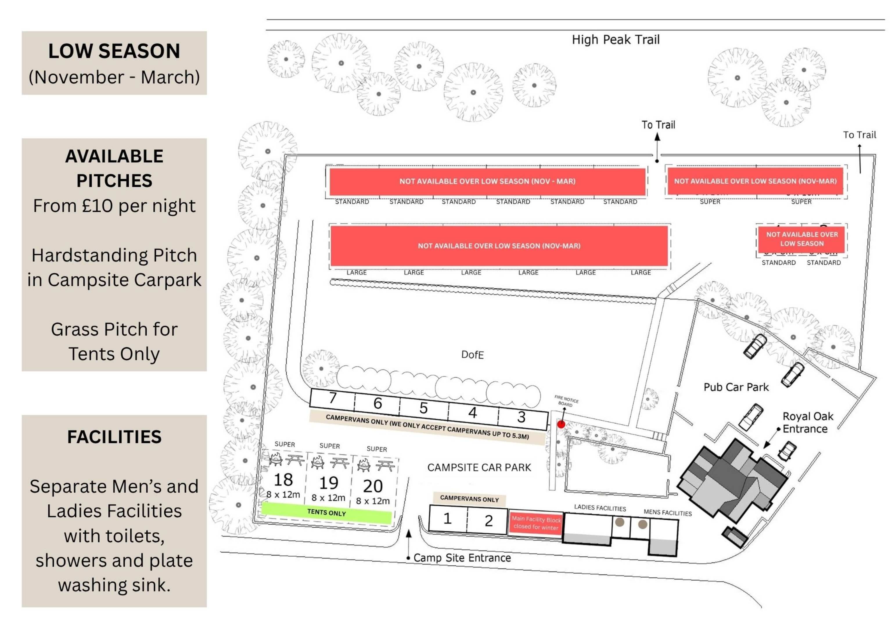 Welcome to The Royal Oak Campsite, a peaceful countryside retreat tucked behind our traditional Peak District pub. Open all year round, our picturesque site offers a friendly, relaxed atmosphere and direct access to the Tissington and High Peak Trails — ideal for walkers, cyclists, and outdoor enthusiasts exploring the stunning Peak District landscape.